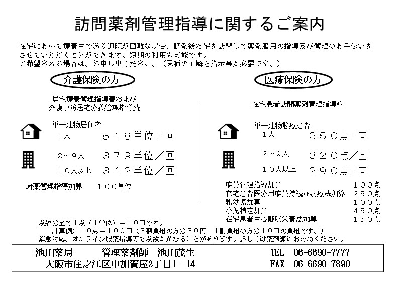 住之江区 加賀屋の池川薬局 ホーム > 在宅訪問